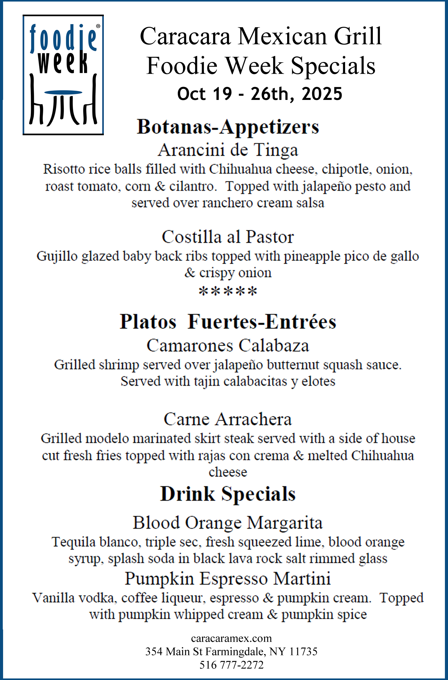 CaraCara Mexican Grill | 354 Main Street, Farmingdale, NY 11735 | (516) 777-2272 | Specials | Website |