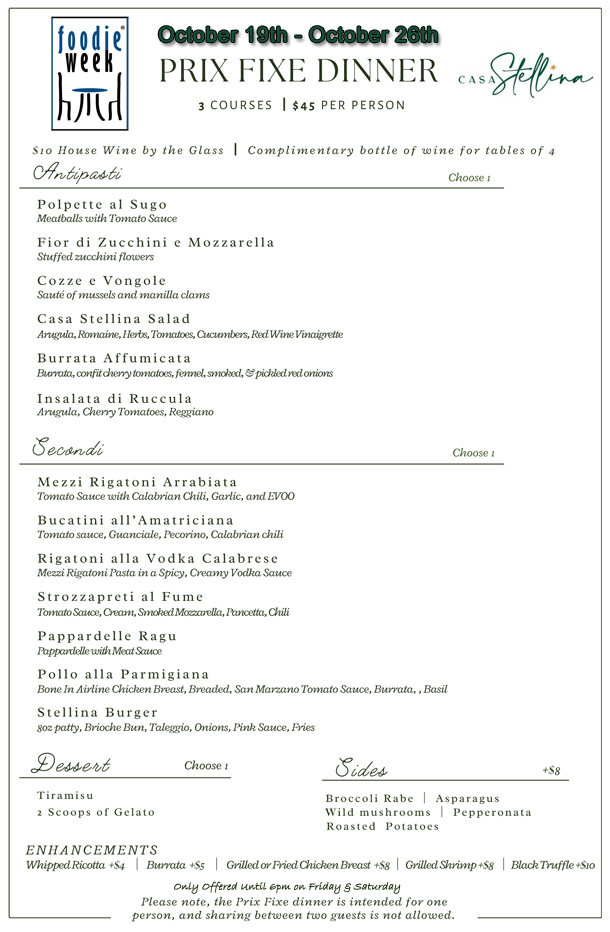 Casa Stellina | 300 Main Street, Farmingdale, NY 11735 | (516) 943-9111 | Specials | Website |