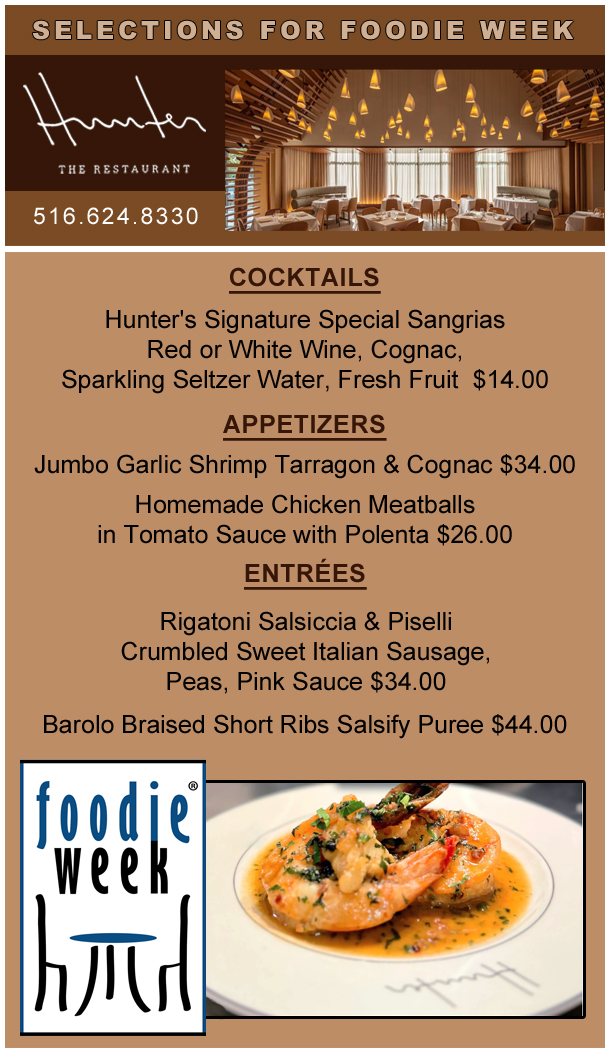 Hunter The Restaurant | 1053 Oyster Bay Rd, East Norwich NY 11732 | (516) 624-8330 | Specials | Website |