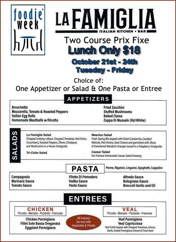 La Famiglia | 641 Old Country Road, Plainview, NY 11803 | (516) 938-2050 | Specials | Website |